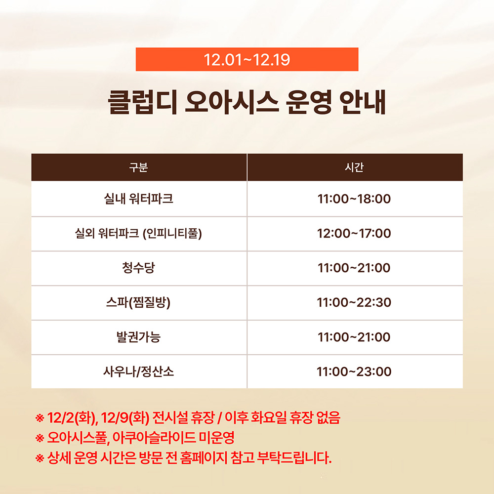12월 1일~19일까지 입장가능(12월 2일,9일 휴장) / 통합권[워터파크/스파&찜질]