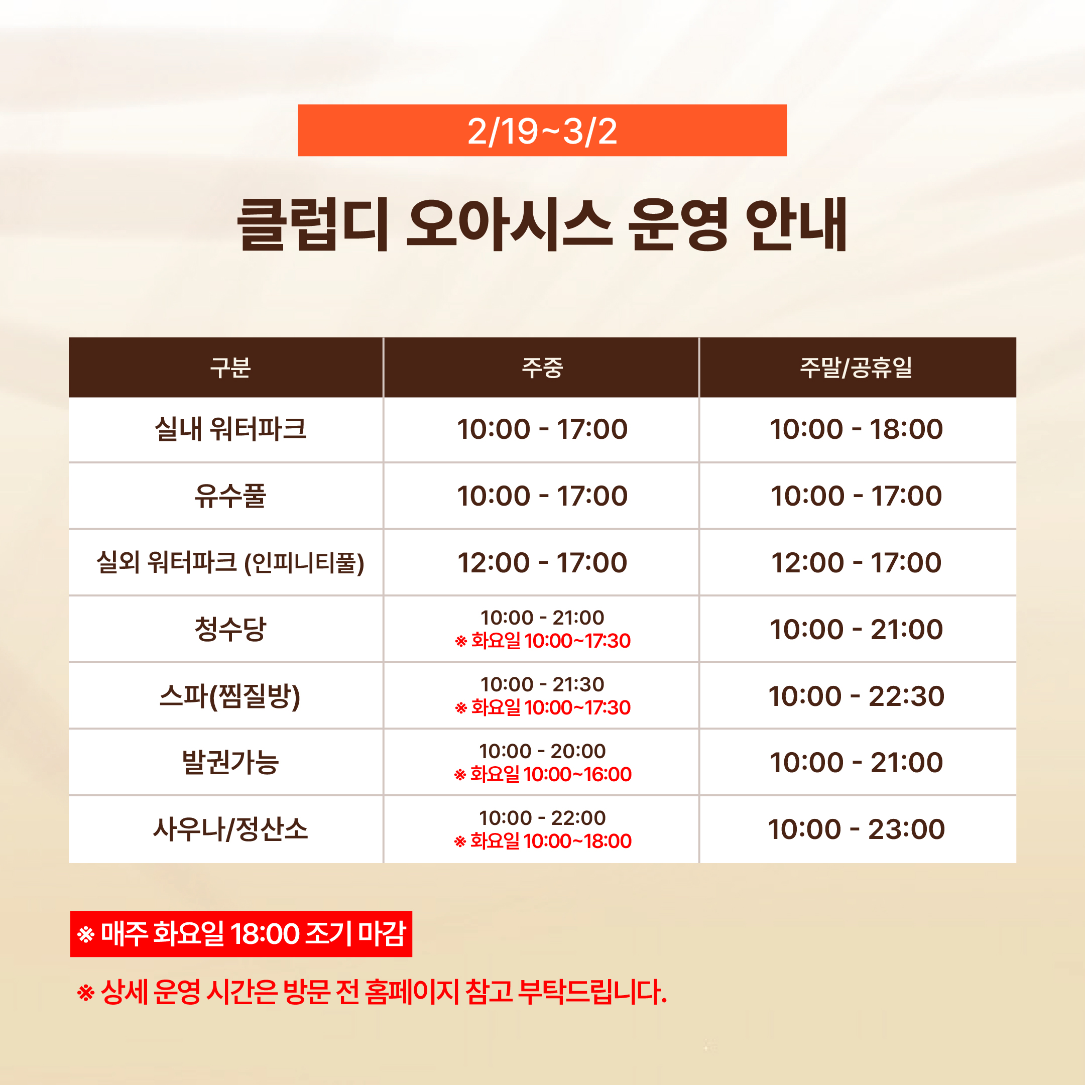 - 타월 : 통합권, 스파권 구매 고객에 한해 1인 2장 무료 지급