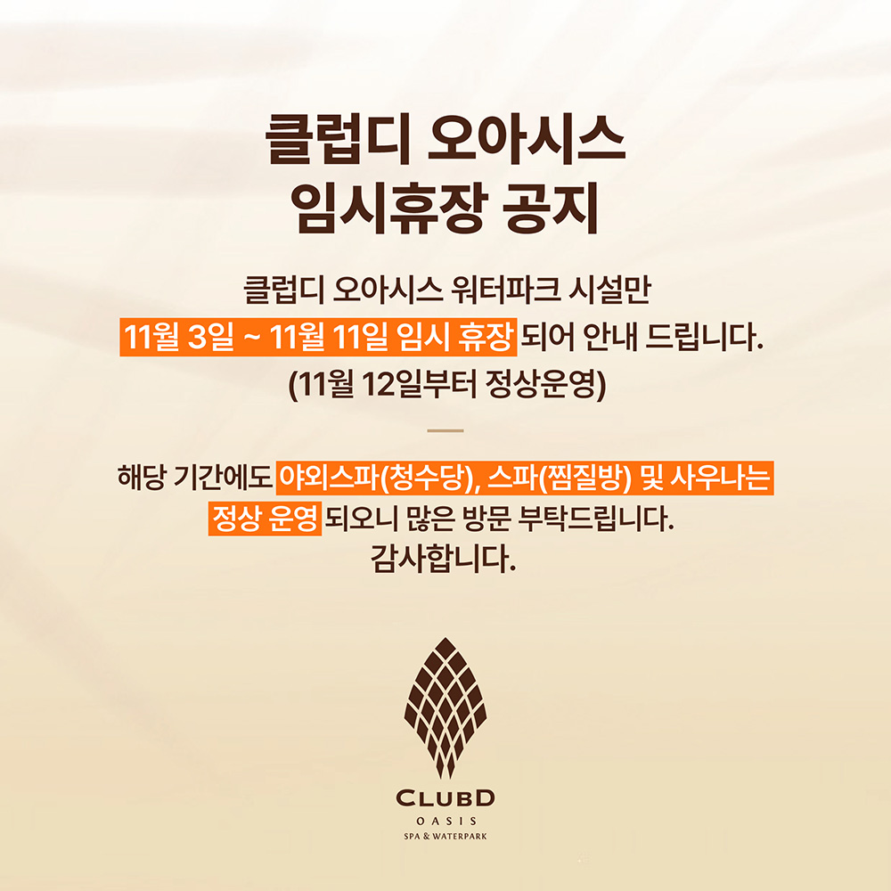 11월 1일~11월 30일까지 입장가능(11/3~11 입장불가) / 통합권[워터파크/스파&찜질]